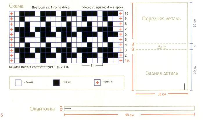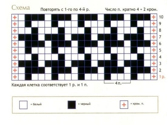 Обычно это сочетание черного и белого цвета, но вяжут и другими цветами пряжи.