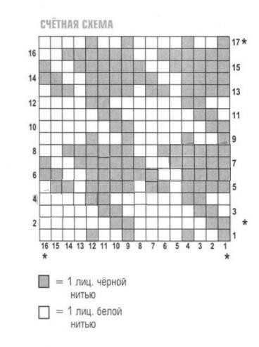 Схема жаккарда очень простая, а вяжут его чаще всего черными и белыми нитками.