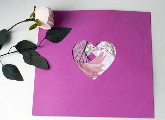 - Если заполнение из цветной бумаги достаточно объемное, чтобы закрыть его, можно использовать лист того же формата, приклеенный на вспененный двусторонний скотч.