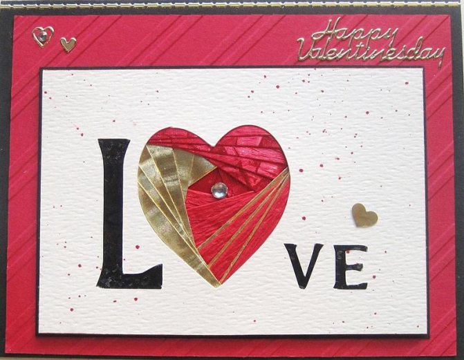 В этом стиле можно сделать открытку, сложив картон пополам и выполнив аппликацию на левой половине.