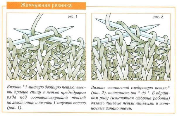 Техника вязания резинки такова – схема 2/1: