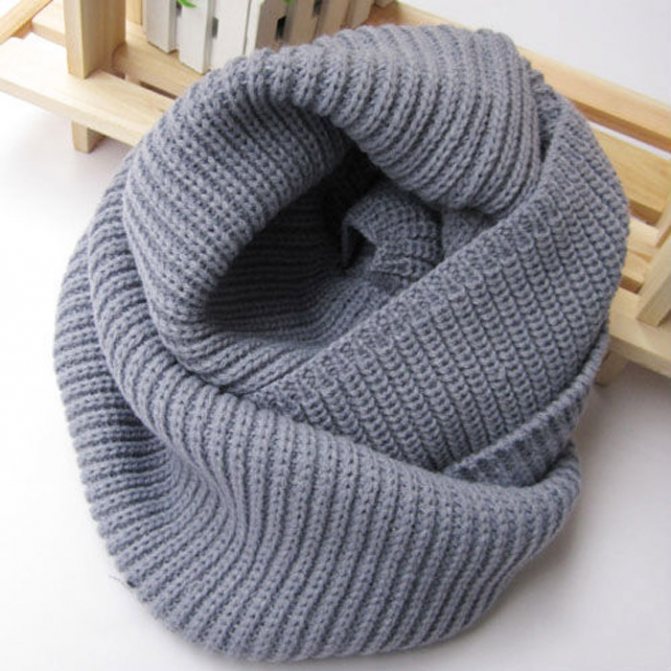 Шарфы такого типа очень популярны. Это изделие легко связать спицами.