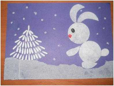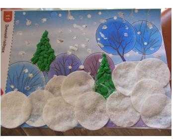 Зимние аппликации из ватных палочек