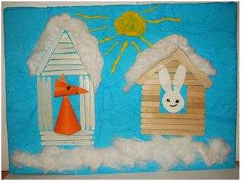 В средней группе садика выполните аппликацию «волшебный зимний домик».