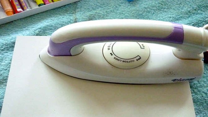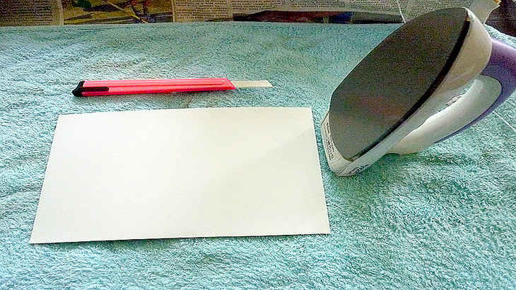Аккуратно переворачиваю утюг и ставлю на первую половинку листа. Плавно,не прижимая к картону, разглаживаю слева направо, доводя до конца листа, поднимаю утюг.
