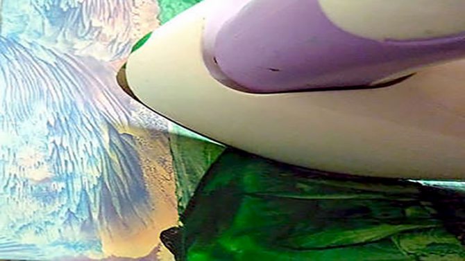 Если и есть чему поучиться, то это различным приемам, благодаря которым мазки получаются различными друг от друга. Существует четыре основных приема мазков утюгом – разглаживание, оттиск, ведение ребром и носом. С первым приемом, думаем, все понятно – положили, расплавили, разгладили по поверхности. Работа ребром нужна для создания эффекта полосок, как у травы или цветов.