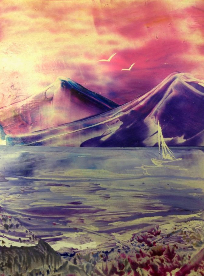 - Когда вся поверхность будет заполнена красками, работа заканчивается.