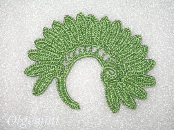- У основания формирующегося листка вязаная часть поворачивается со стороны ВП создаваемого листочка, и по кругу происходит набор двадцати двух полуст.