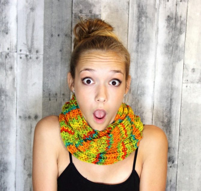 Чтобы понять, как связать круговой шарф хомут спицами, модный снуд или шарф-трубу, достаточно освоить простую вязку классического шарфа.