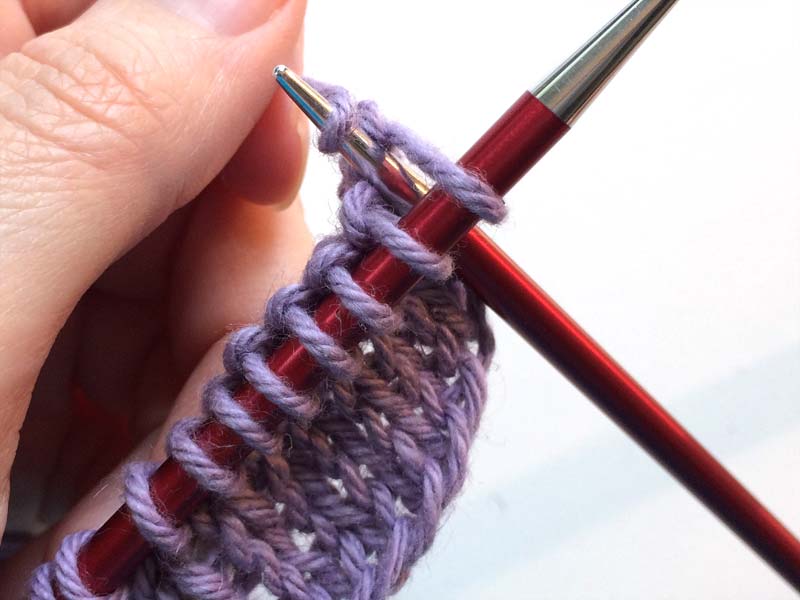 Правой спицей провязать две петли вместе и надеть снова на исходную спицу. Процесс повторить.