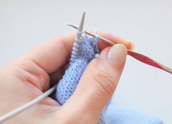 Действия продолжаются подхватом иголки последующих двух лицевых, а затем изнаночных петель. Так формируется эластичный кант, красиво обрамляющий край изделия.