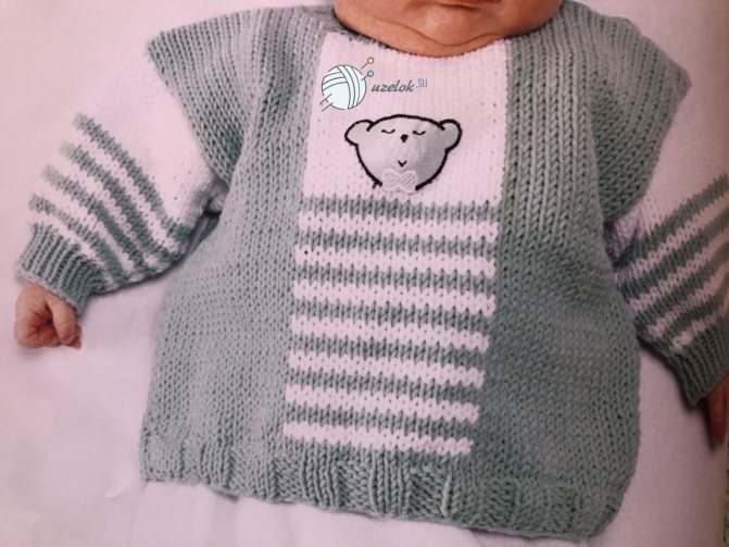 Плотность вязки и узор зависят от времени года. На лето можно связать ажурную вещь легкой вязкой из более тонких ниток. Зимой — теплый свитер из мягкой объемной пряжи согреет малыша.