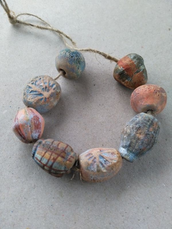 После тепловой обработки отдельные бусинки разукрашиваются, украшаются геометрическим орнаментом или привлекательной росписью, покрываются лаком и объединяются в бусах.