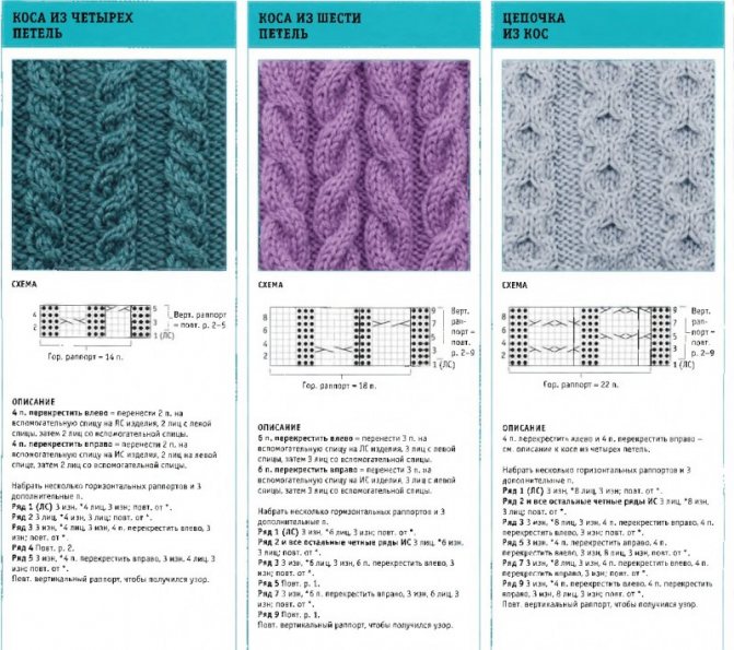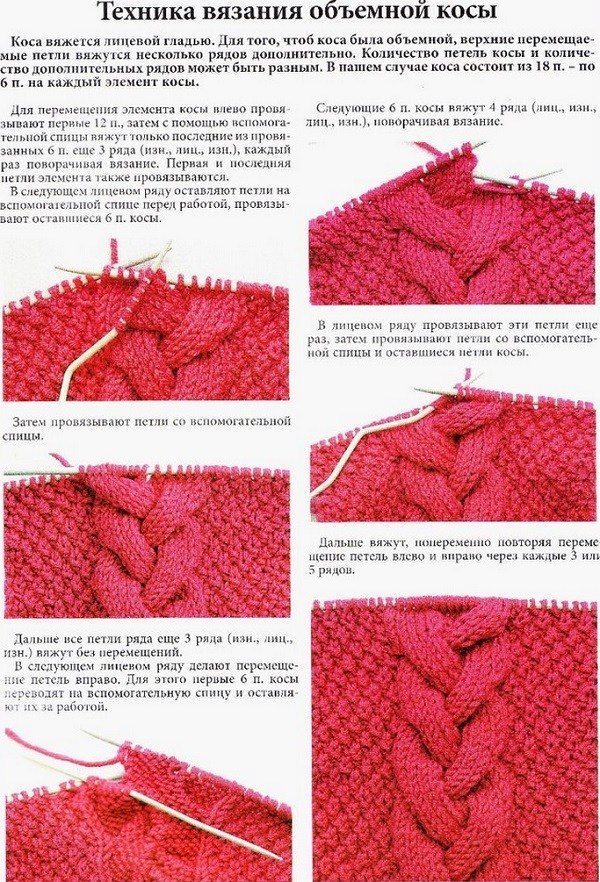 Некоторое количество петель провязывается и потом оставленные петли возвращаются в вязание. Таким образом и получаются красивые и рельефные косы.