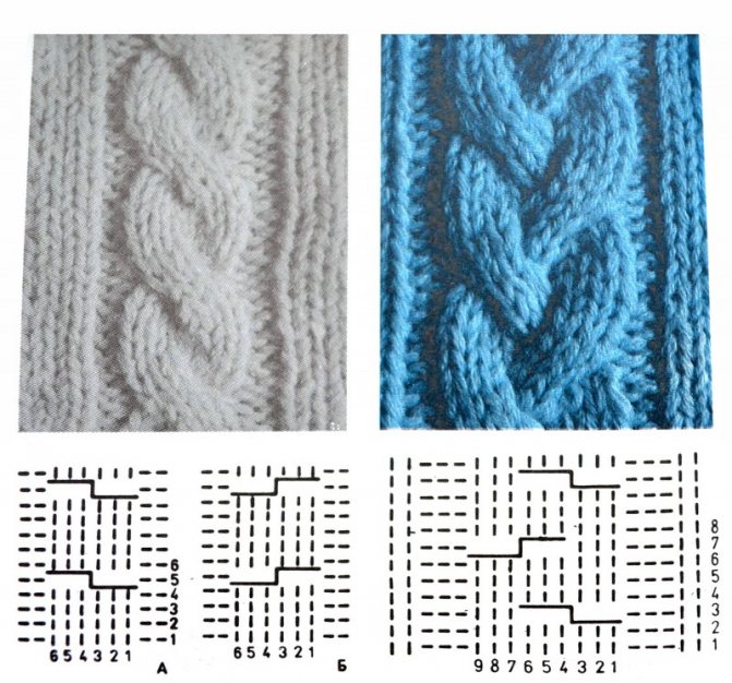 Чтобы выполнить переплетение влево, необходимо петли, которые снимаются на дополнительные спицы располагать перед работой, после необходимо будет провязать лицевыми оставшиеся петли жгута, а дальше провязать лицевыми петли которые прежде снимались на дополнительную спицу.