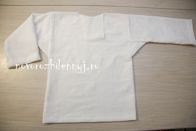 Загибаем края рукавов и низ рубахи.