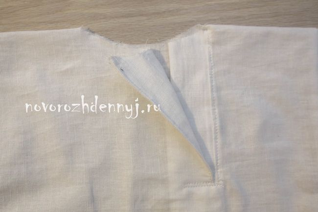 - Подогнуть рукава и низ рубахи, прогладить их и прострочить.