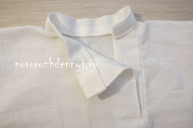 Обработать разрез у горловины бейкой. Обработать горловину рубахи бейкой.