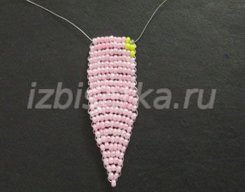 - 21 ряд: 2 жёлтых бисерины, 9 розовых.