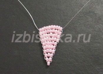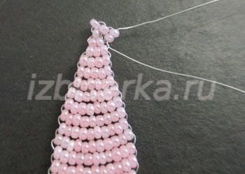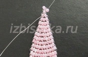 - с 10 по 16 ряд: 6 бисеринок в каждом ряду.