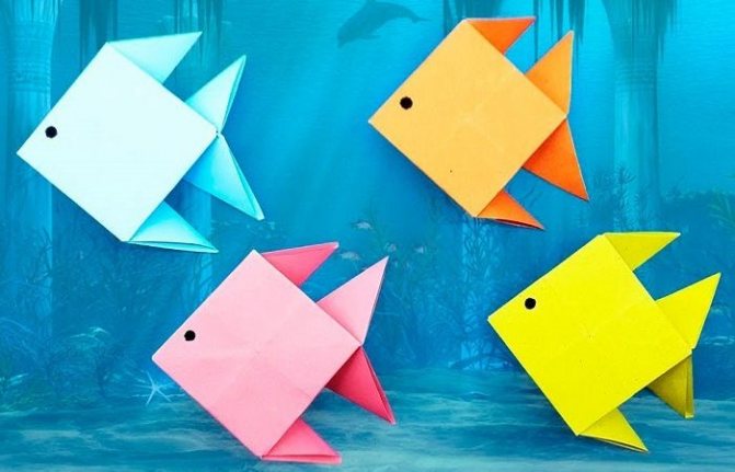Вместе с ребёнком можно сделать из бумаги замечательный домашний аквариум. Среди схем рыбок-оригами для детей встречаются самые популярные породы: китайские караси, вуалехвосты, скалярии. Отдельного внимания заслуживают японские карпы кои, которых делают в объёмной технике из разноцветных листов бумаги, а затем используют для красивых и стильных панно.