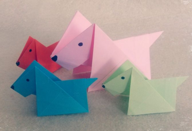 На фото увидите оригами собаку, которая в итоге должна получиться.