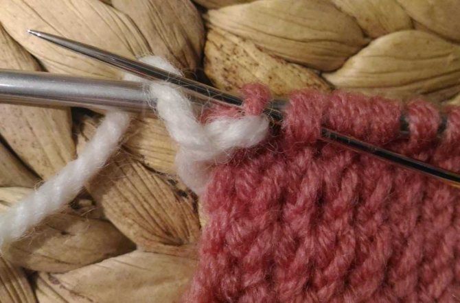 Для начала следует вывязать два либо четыре ряда резинкой 1х1. Если вязание идет по кругу, делать надо так. Первый ряд: вяжут исключительно лицевые петли, изнаночные следует снимать. Не провязывая, оставляя нить перед работой. В следующем ряду вязать только изнаночные, лицевые просто аккуратно снять, нить будет за работой.