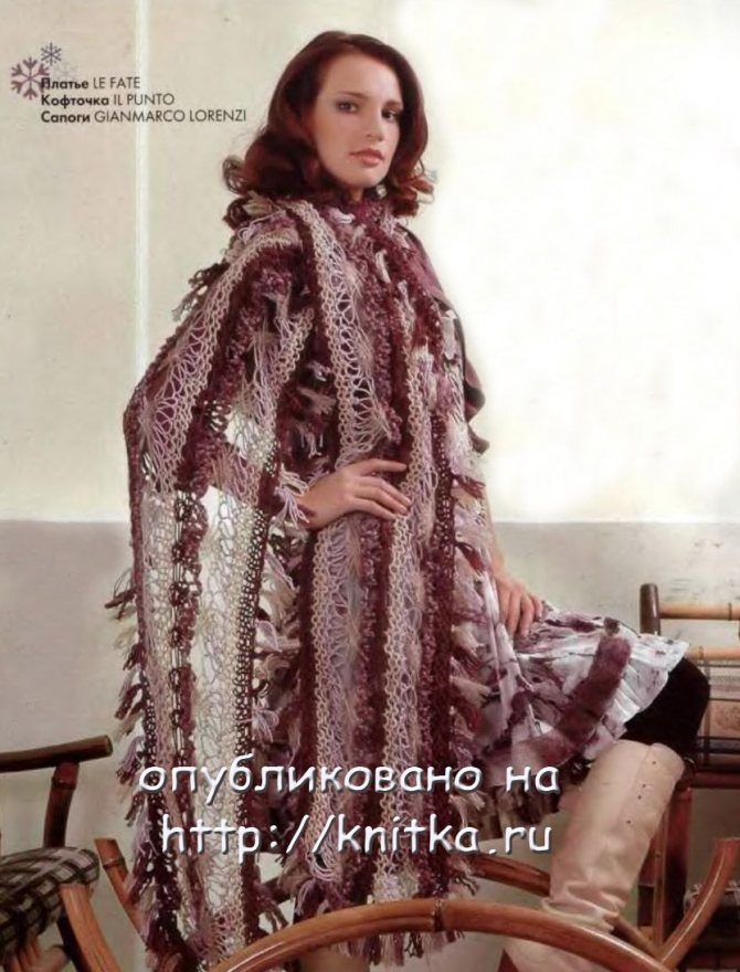 Необычный запашной палантин с рукавами можно накидывать на плечи самыми разными способами, создавая новые образы и меняясь вместе с ним за считанные мгновения. Нетривиальная работа с цветами отражает бесспорный художественный вкус.