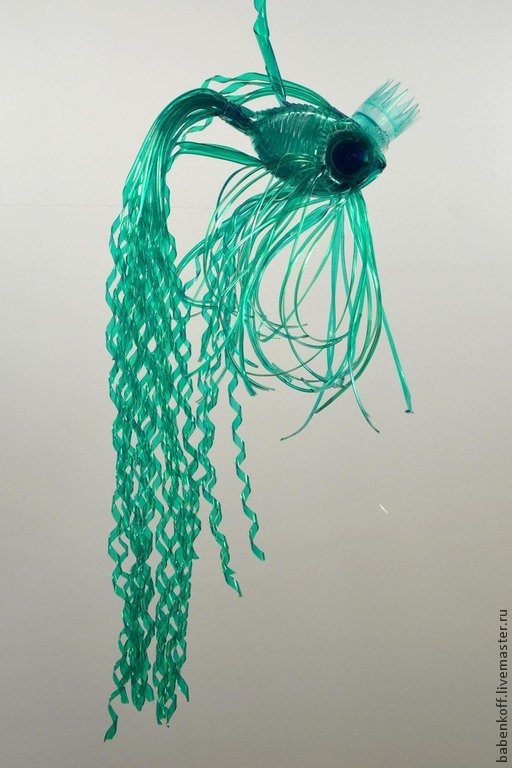 Теперь в готовое тело рыбки вставляем в пустое пространство глазик. Его надо достаточно плотно там укрепить. Трубочки от капельниц очень эластичные и легко поддаются трансформации.
