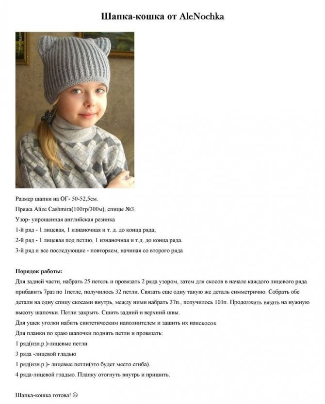Мастер – класс по вязанию шапки – кошки спицами