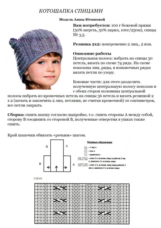 Схемы вязания котошапок с описанием