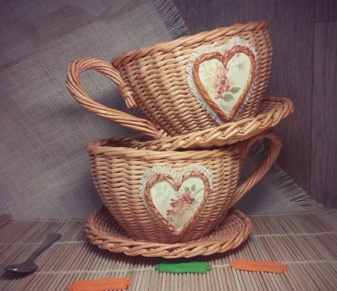 Края блюдца и чашки для прочности можно пройти веревочным плетением.