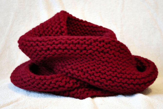 - Провязываем лицевой гладью отрезок в 14 см (при такой вязке чередуются в каждом ряду лицевые и изнаночные петли)