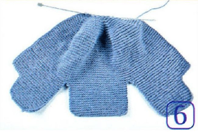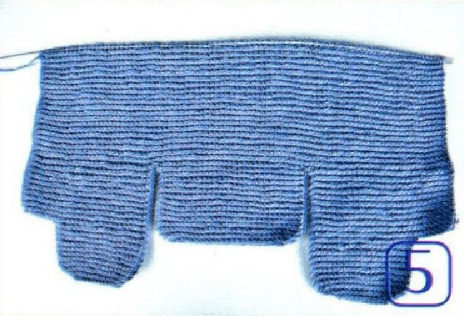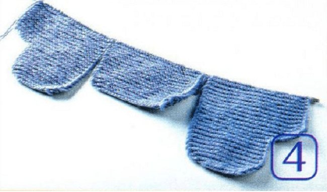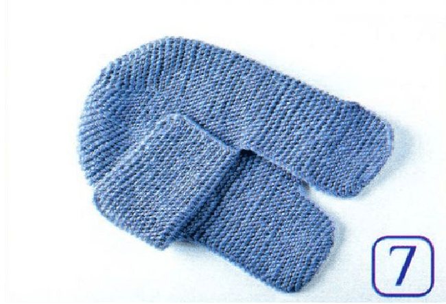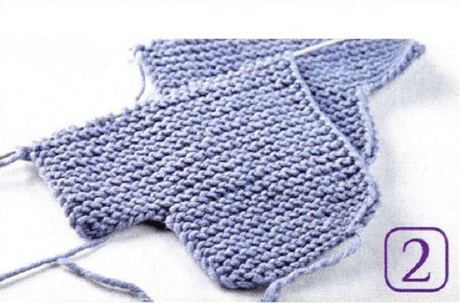- Отдельно наберите спицами 22 петли. Аналогично предыдущим действиям прибавляйте через ряд, пока их не станет 30 шт. далее – вязание платочным рисунком еще 24 рядка.