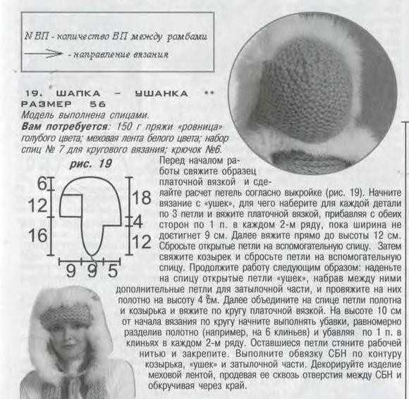 Чтобы понять, как вяжется шапка-ушанка, возьмем для примера мастер-класс по изготовлению шапки для женщины.
