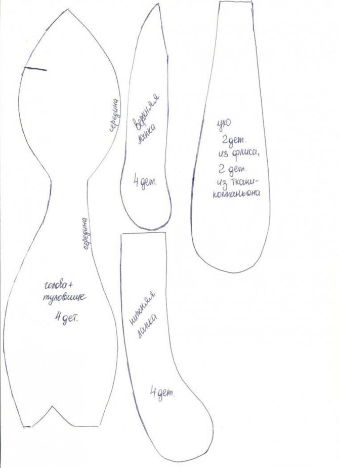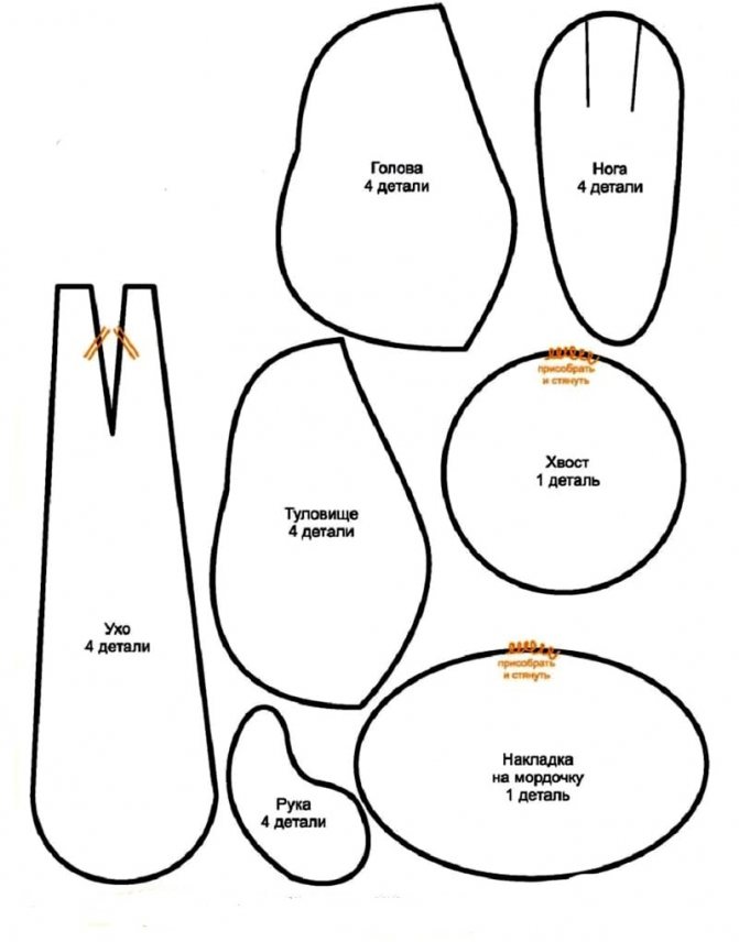 - Перенести на ткань выкройку лапок, ушей, хвоста.