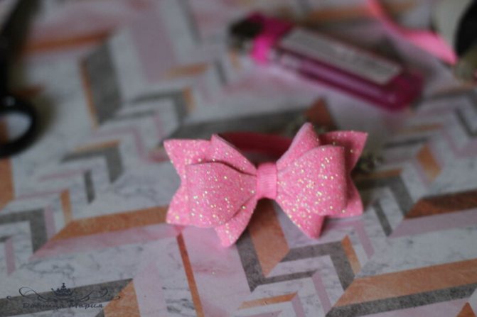 Бантики из глиттерного фоамирана по шаблону трезубец на резинках