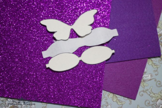 Для декора серединки она вырезала еще бабочку с глиттером. И приклеила всю эту красоту на резиночку для волос.