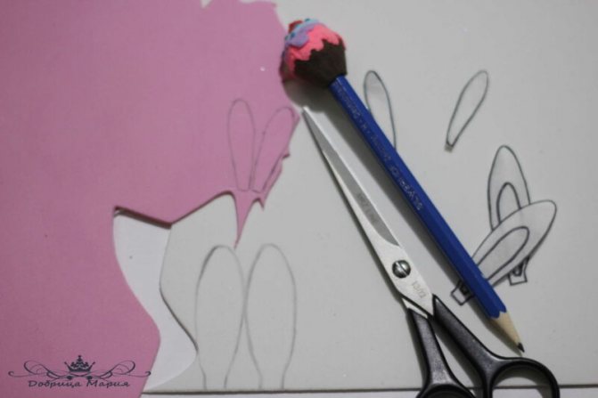 Большие ушки вырезаем из белого, а внутренние из розового цвета.