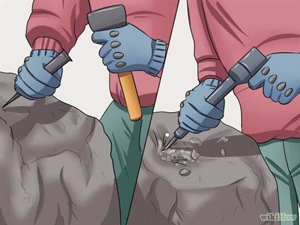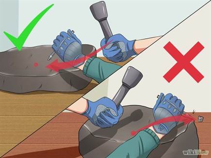 Теперь, держа молоток в ведущей руке, а долото в свободной, можно начать аккуратно обрабатывать камень, технология не доставит много хлопот.