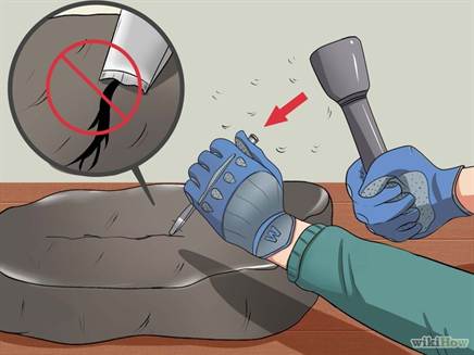 - Всегда надевайте защитные очки. При работе молотком и зубилом будут откалываться осколки, которые могут поранить глазное яблоко.