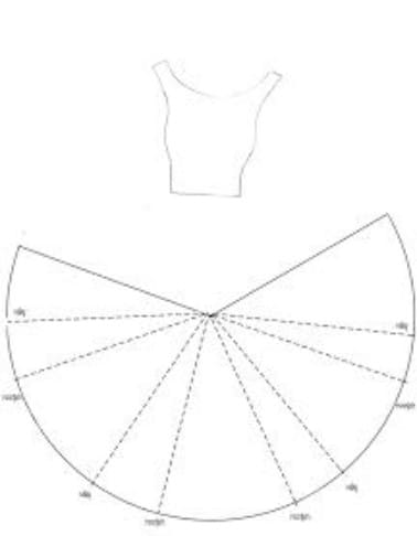 Вырезаем детали. Юбку сворачиваем по пунктирным линиям, чередую складки. Первый подгиб вниз.