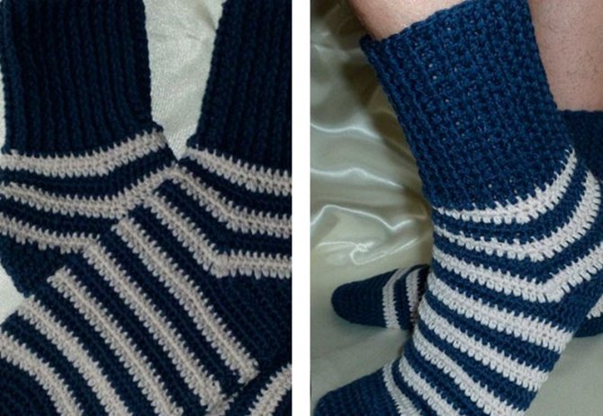 Для закрепления информации предлагаем связать вместе простые, но очень симпатичные мужские носки! Готовое изделие будет выглядеть вот так: