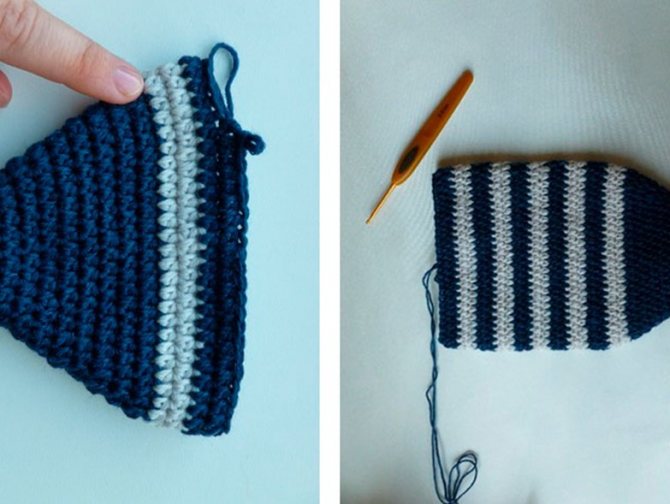 Нижняя часть пяточки выглядит как треугольник. Продолжаем вязать полустолбиками.