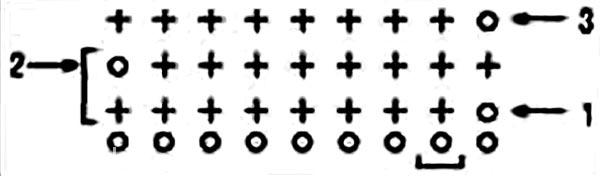 Важно! Число столбиков во всех случаях должно быть единым. Если в начальном ряду вы создали 20-25, ровно столько же нужно реализовать и в ряду завершающем. Данное правило не действует разве что в полотнах, где вы убавляете рисунок.