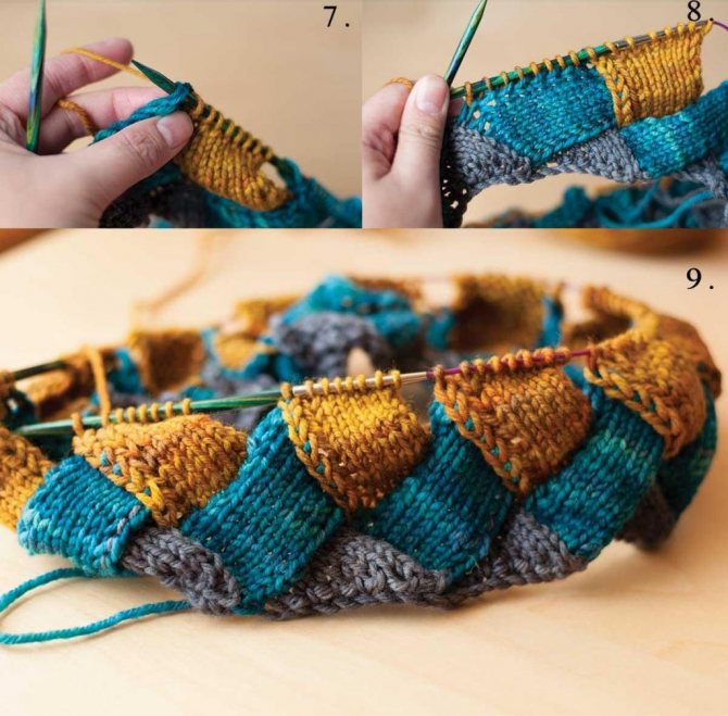 Техника энтрелак позволяет вязать не только в продольном и поперечном направлении, но и от угла.