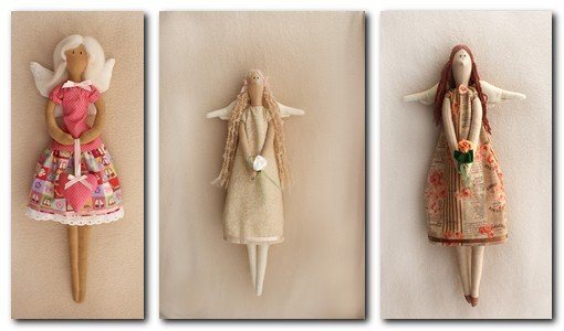 Есть огромное количество разновидностей выкроек ангелочков тильда, которые, при желании, можно создать самостоятельно. А можно немного отойти от установленного образца, изменить прическу и наряд интерьерной кукле – вот готово совершенно новое и необычное изделие.
