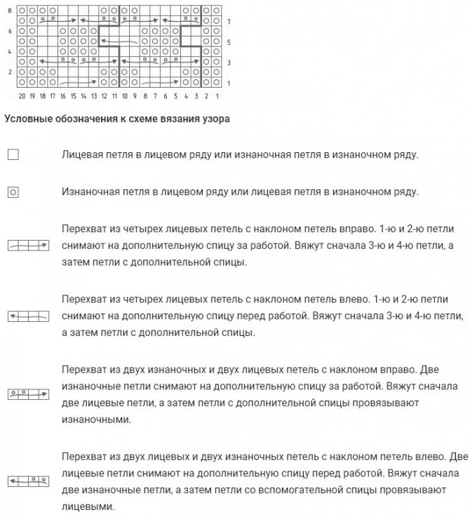 Важно! Схема показывает только лицевые ряды, изнаночные вяжем и. п.