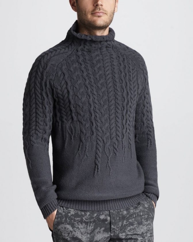 Красивый смысловой аран со знаком бесконечности вы можете использовать для оформления центра изделия или на рукавах, а так же связать 2 — 3 полоски, заполнив всю поверхность детали свитера или кардигана. Он подойдет как для женских вещей, так и для мужских.