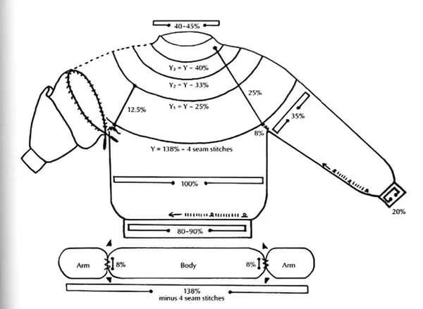 Основные обмеры мы получили. На их основании посчитаем число петель, рядов и прибавок, увеличивающих ширину полотна.